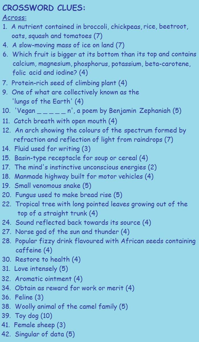 Violet’s Vegan e-comics crossword