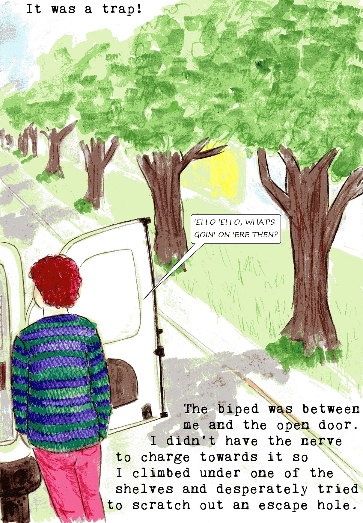 What a ridiculous menace he is! 😀 Come back tomorrow to find out what happens next, unless you don’t want to wait, in which case, you can find out now 😀